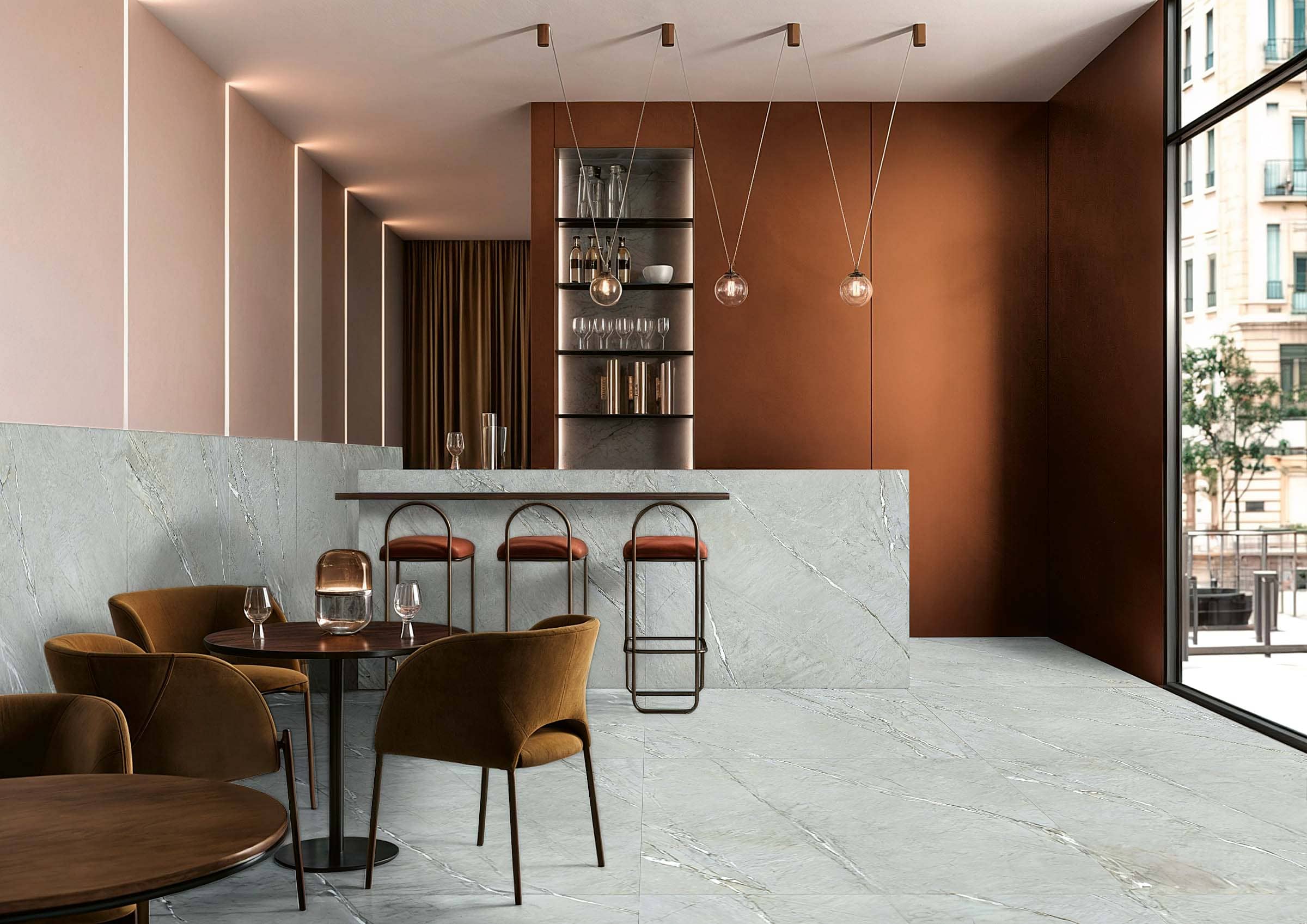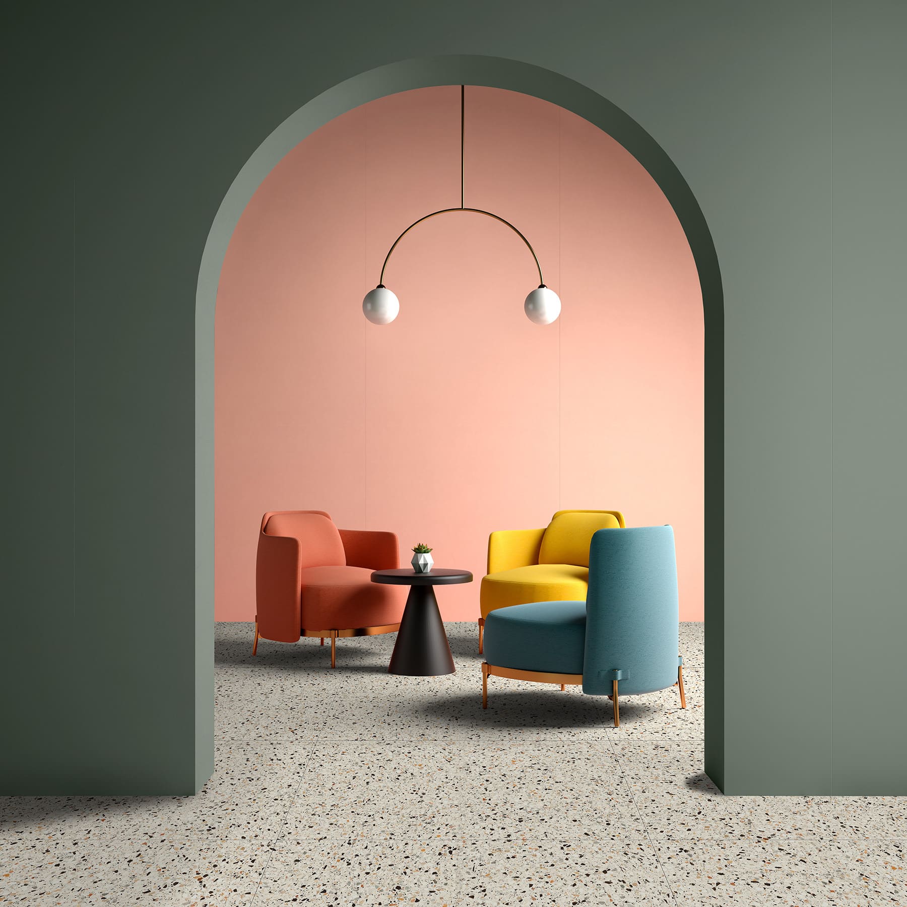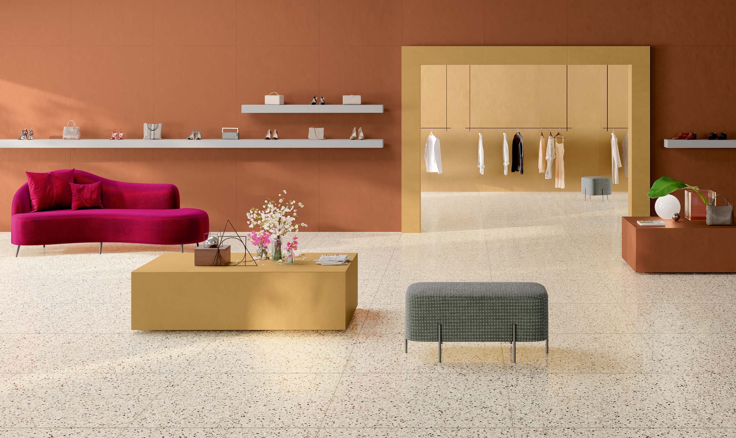 Коллекция Mood раскрывает архитектурный потенциал цвета через насыщенные оттенки и плотные матовые поверхности. Десять цветовых решений с интенсивной пигментацией создают мощный визуальный эффект, позволяя создавать как монохромные пространства, так и сложные колористические композиции. Коллекция идеально сочетается с терраццо Medley, образуя гармоничный дуэт для проектов, где важны глубина материала, игра текстур и цветовых контрастов.