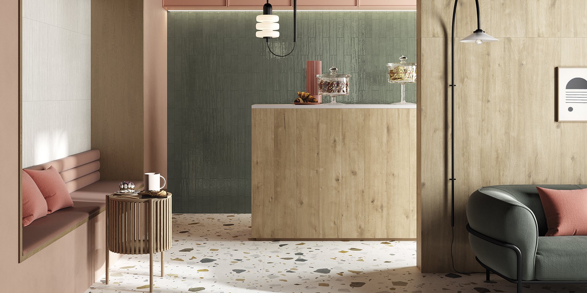 Коллекция плитки Colorful — это смелая игра с цветом и текстурой. Керамогранит, вдохновлённый бетоном и палитрой венецианской терраццо, привносит свежесть и необычную выразительность в дизайн любого современного пространства.