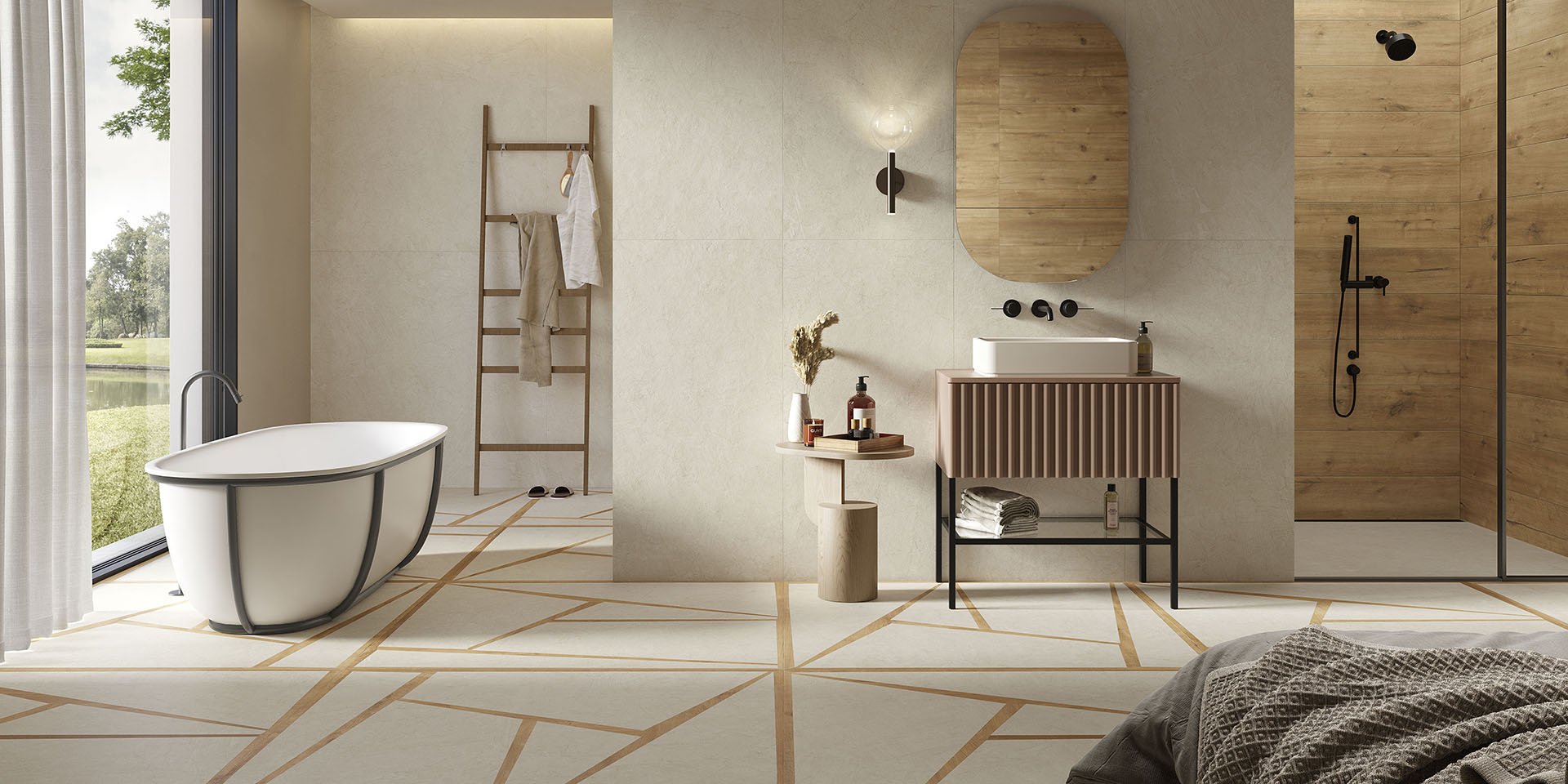 Коллекция Mindwalk создаёт лёгкость и простор. Тёплая гамма с акцентами под дерево и фактурой камня объединяются, чтобы сделать интерьер воздушным и по-новому беззаботным.