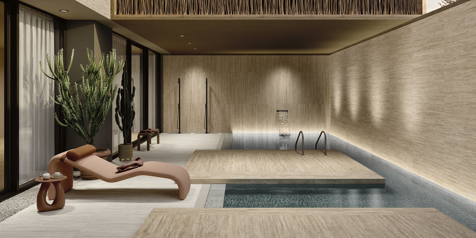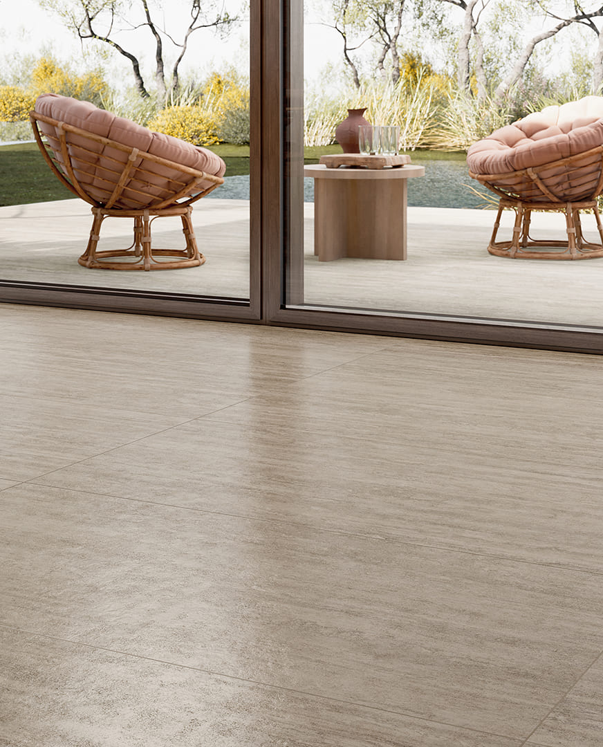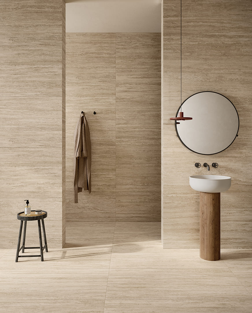 Коллекция New Classic — это керамогранит под римский травертин, заново открывающий красоту камня античности в современном прочтении для создания архитектурных интерьеров и экстерьеров с историческим шармом.