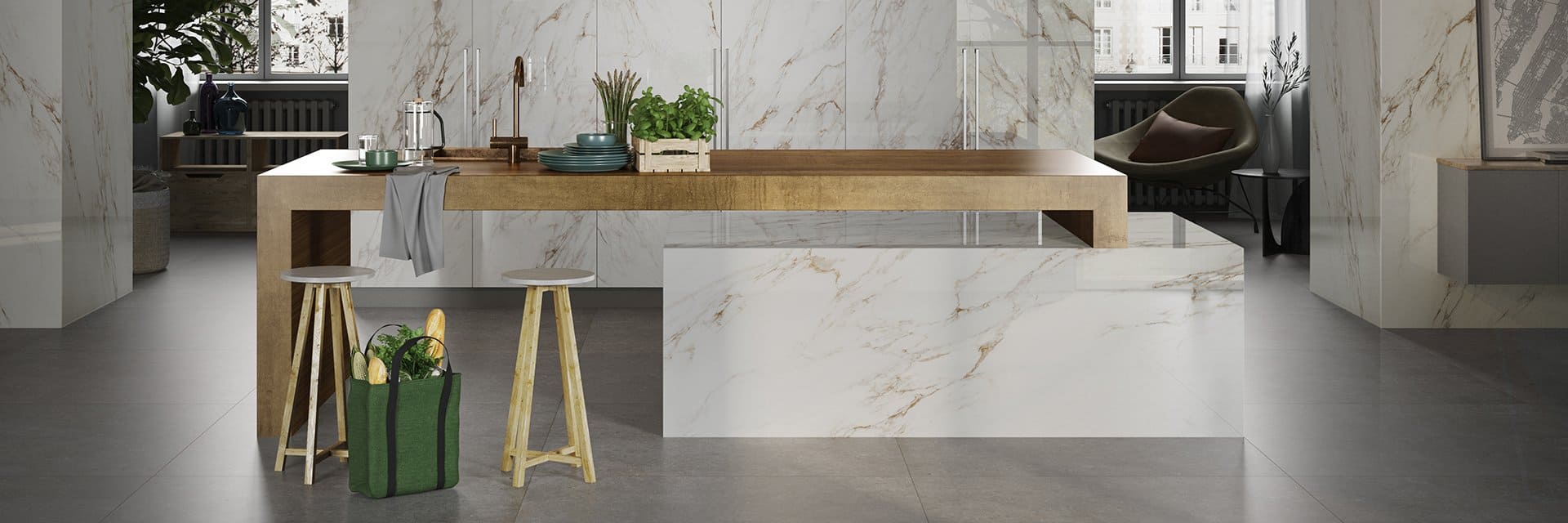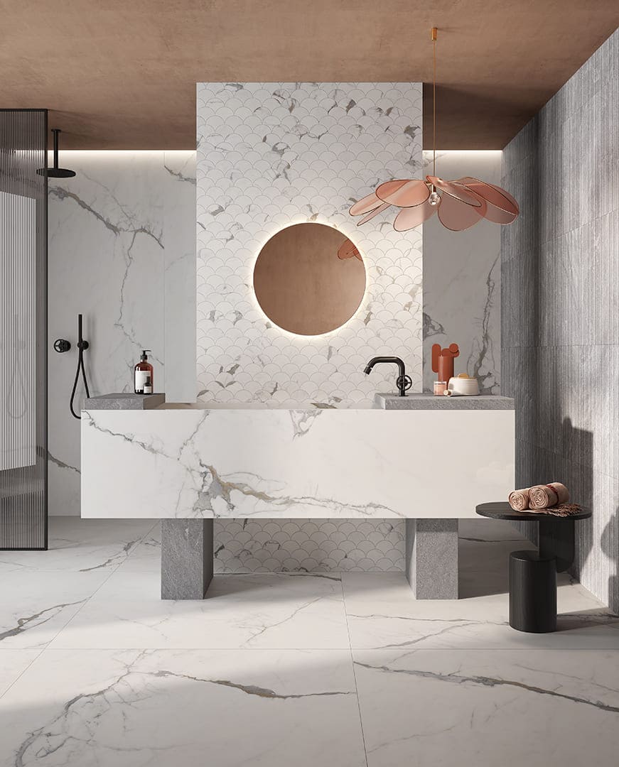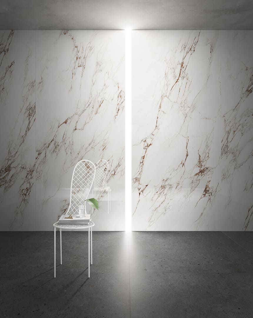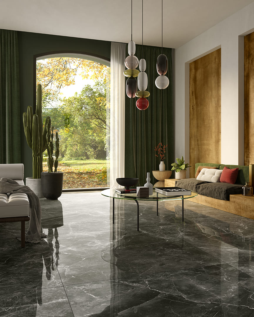 Коллекция Sunshine — глянцевый керамогранит, вдохновлённый редкими видами мрамора. Он создаёт в интерьере игру света, глубину цвета и атмосферу средиземноморской роскоши.