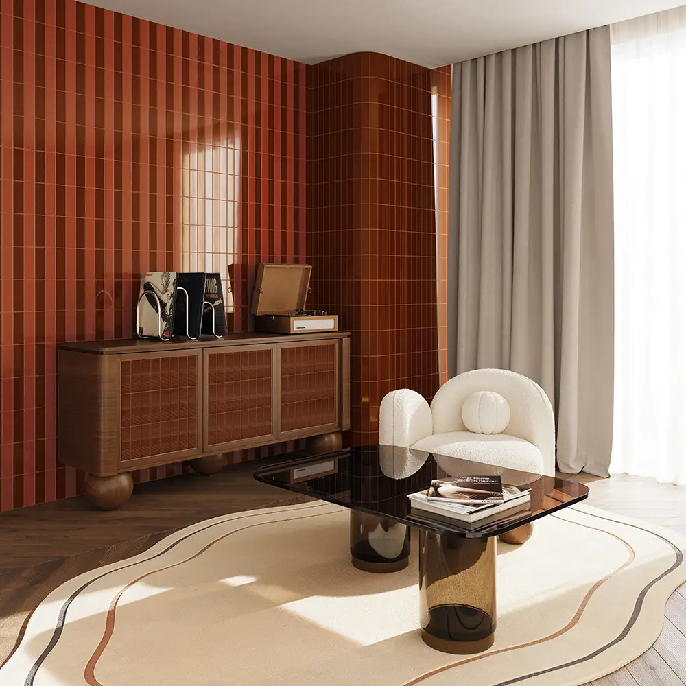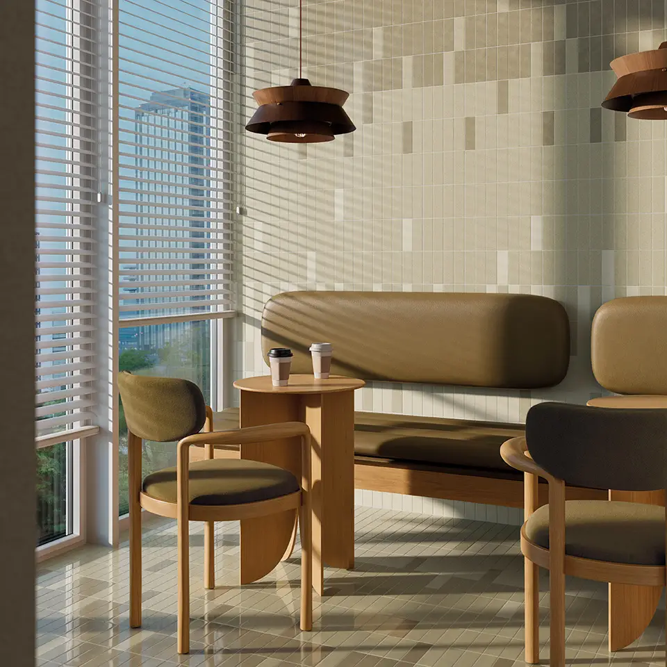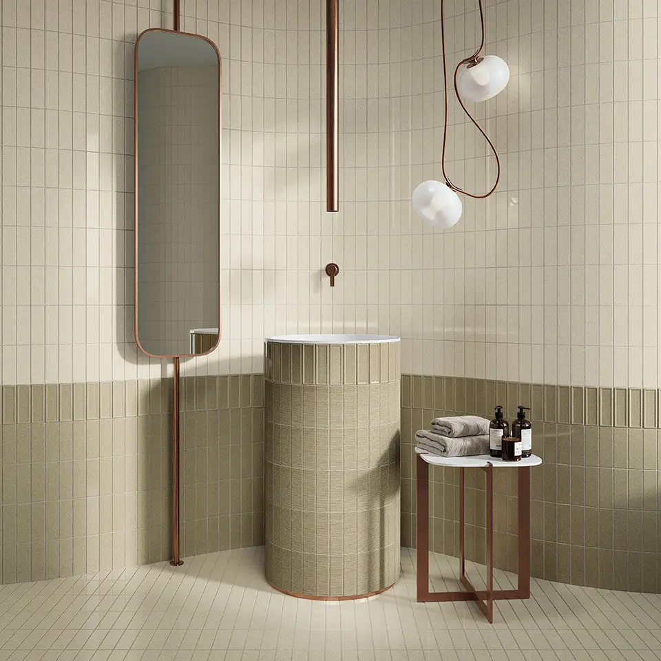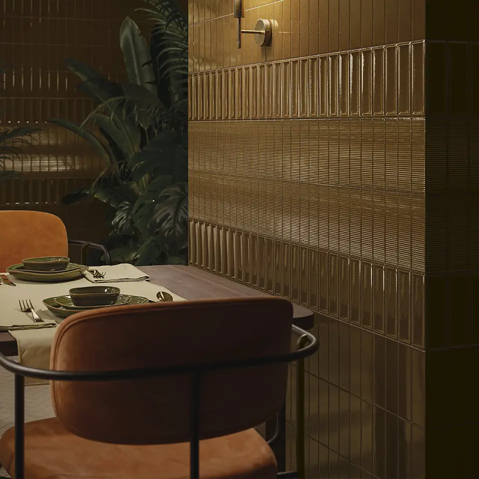 Не всем поверхностям нужен рельеф, чтобы привлекать внимание — иногда достаточно света. Именно на этой идее построена коллекция Micare: глазурь, в которой минеральные искры и тонкие тёмные вкрапления оживают по-разному в зависимости от угла зрения. Три варианта насыщенности (от сдержанного до выразительного) позволяют управлять яркостью и визуальной силой покрытия, не меняя его гладкой текстуры на ощупь.